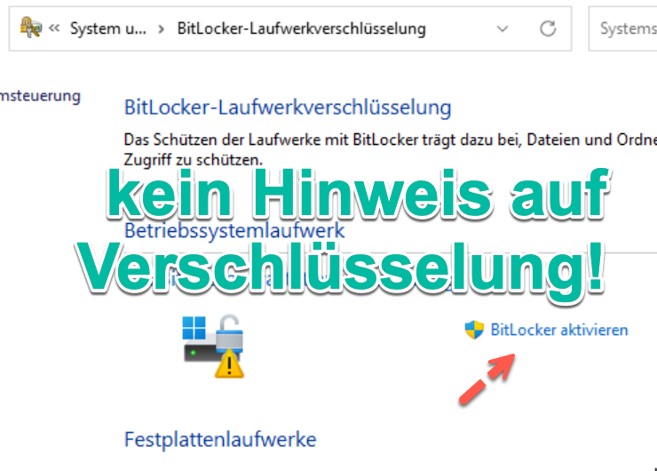 Beim Umbau der Festplatte oder bei einer Wiederherstellung auf einem neuen PC (z. B. über URBackup) kann das System nicht entschlüsselt werden.
